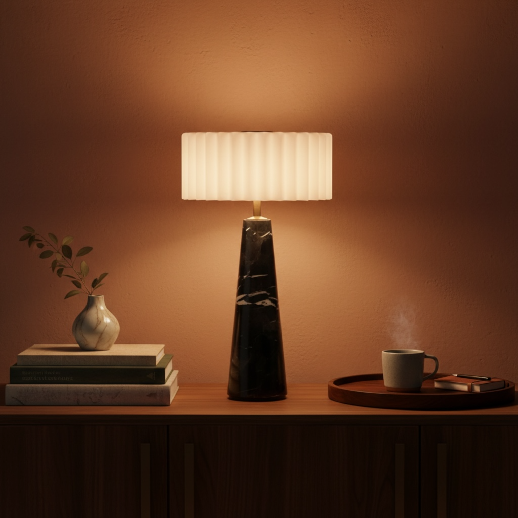 Zacht, warm licht dat elke ruimte direct tot rust brengt. Aanwezig op tafel, zonder ooit te overheersen.